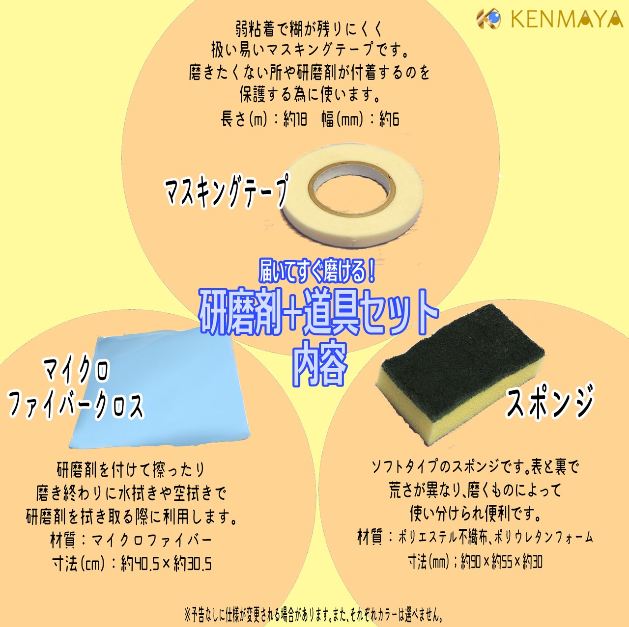 研磨剤+道具がすべて揃っているので届いてすぐ使える