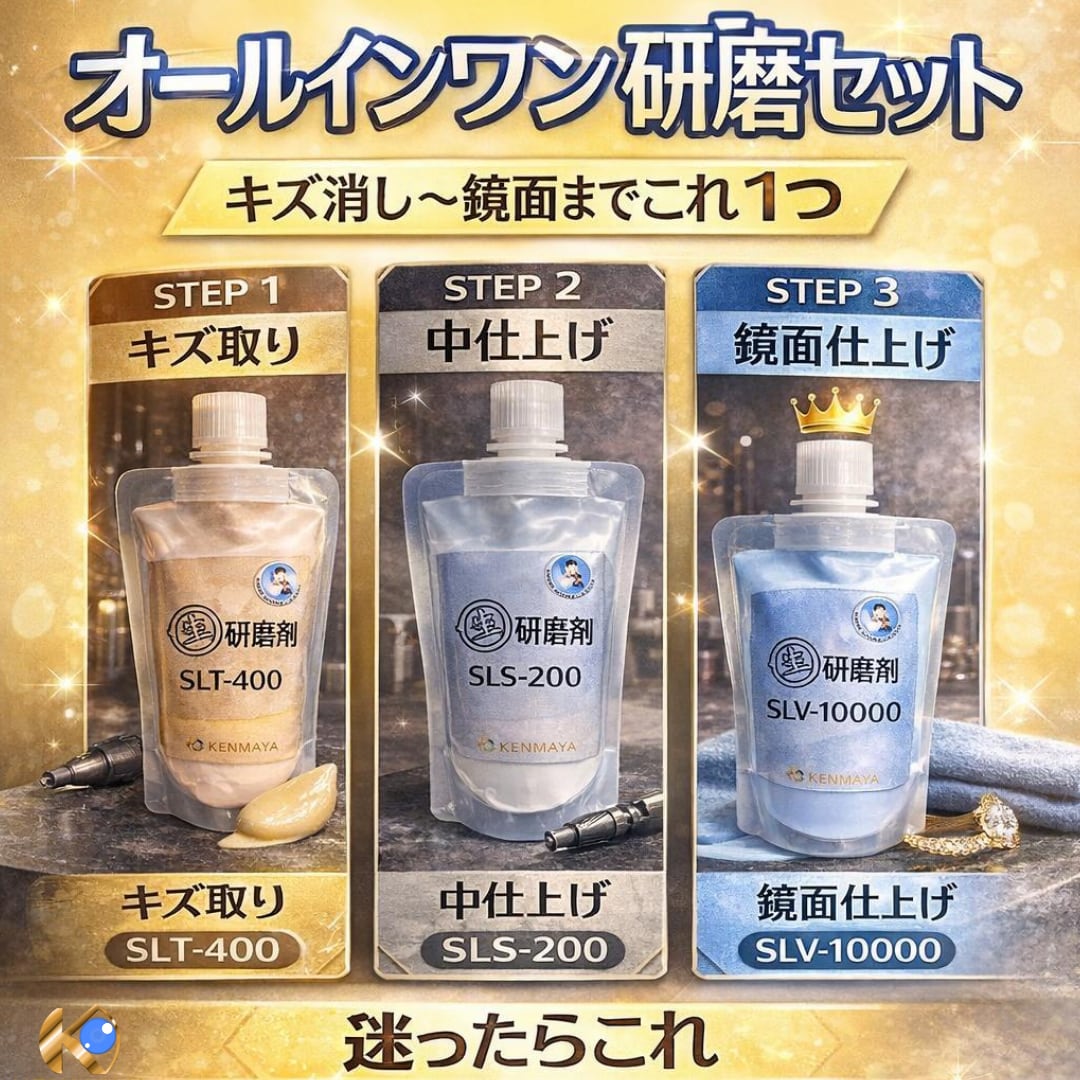 キズ取りから鏡面仕上げまで、このセット1つで完結。
