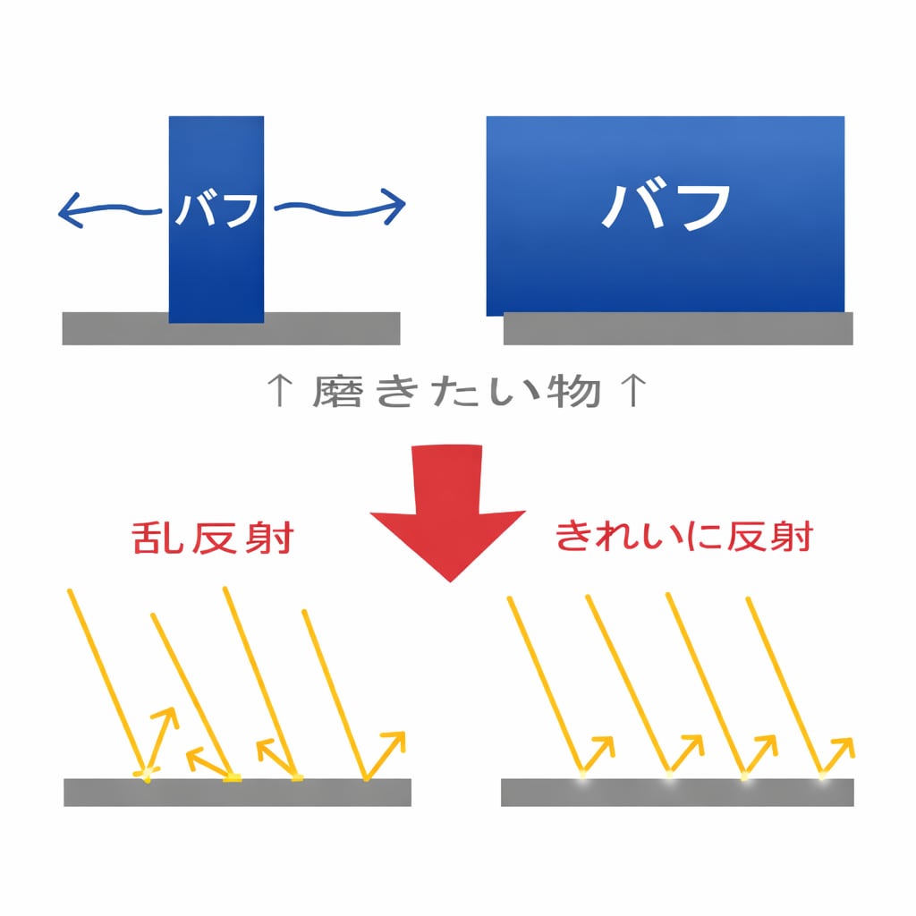 使用中に変形したバフ面を均一に整え、研磨精度を安定化させます。