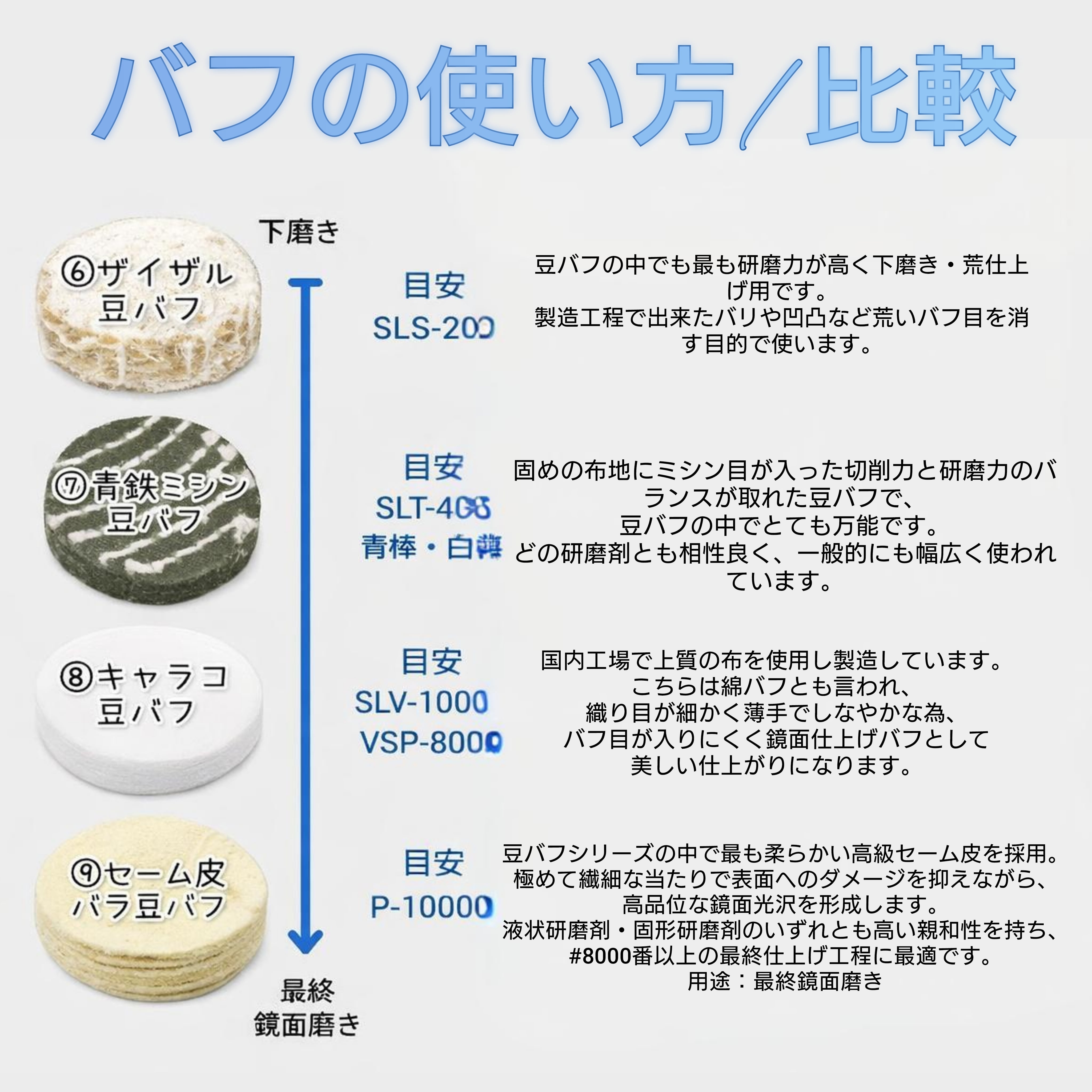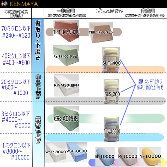 ※研磨剤は番手の小さい→大きい順番で使用