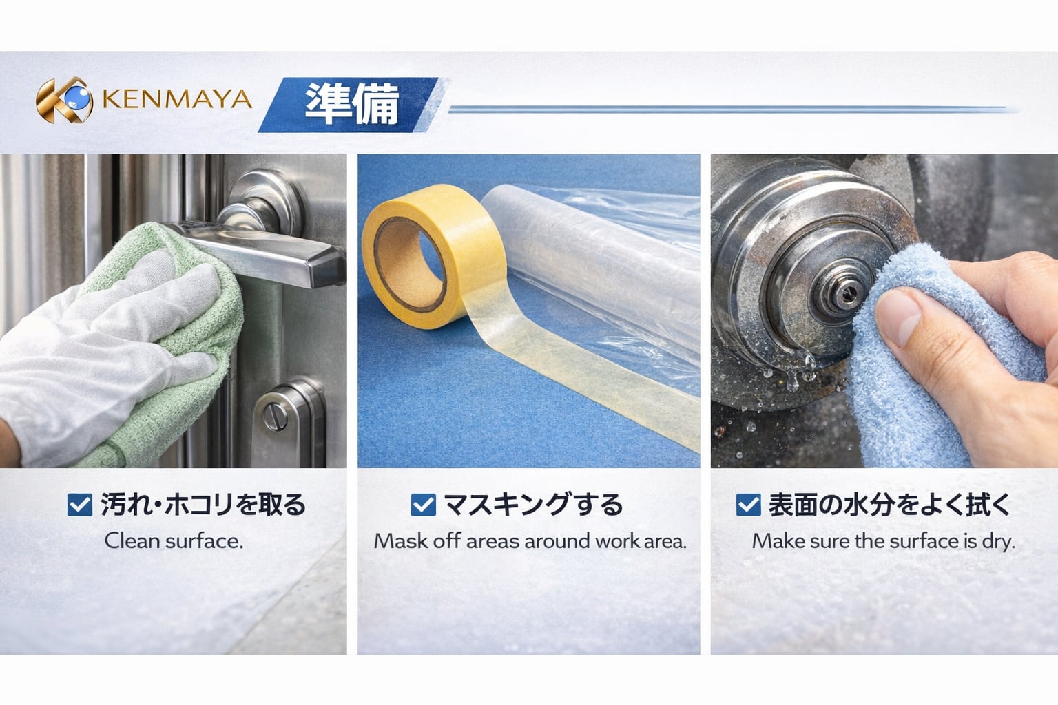 研磨後の汚れや水分を